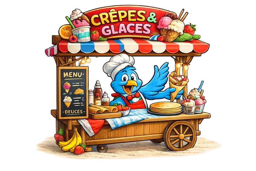 Mitten im Wasserpark erwartet Sie den ganzen Tag über ein Imbissstand. Er ist ideal für eine kleine Stärkung oder einen Snack und bietet Crêpes, Popcorn, Eis, Süßigkeiten und Getränke für Groß und Klein.